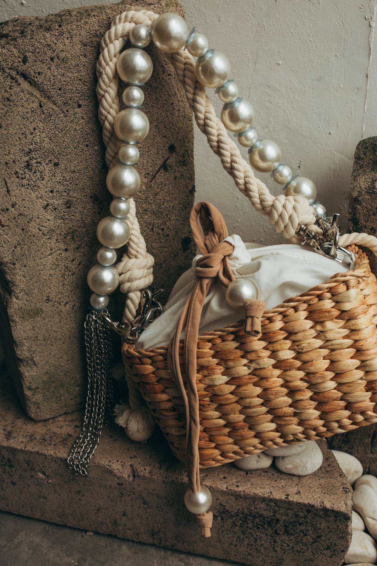 Inspired by a bright, cheerful, and warm person. 'Halo' bag & stripes are all handmade from handstitched pearls, chain, flowers beads & swarovski which symbolizes ameliagonta's personality, BRIGHT & WARM.